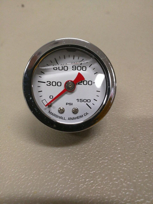 EWNitrous Oxide Pressure gauge, 0-1500 psi liquid filled white face w/red needle.